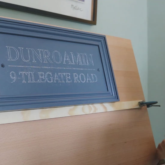 Each House Sign is made to order by me in my little workshop at my home in Nottinghamshire with my dog Ted snoring in the background.